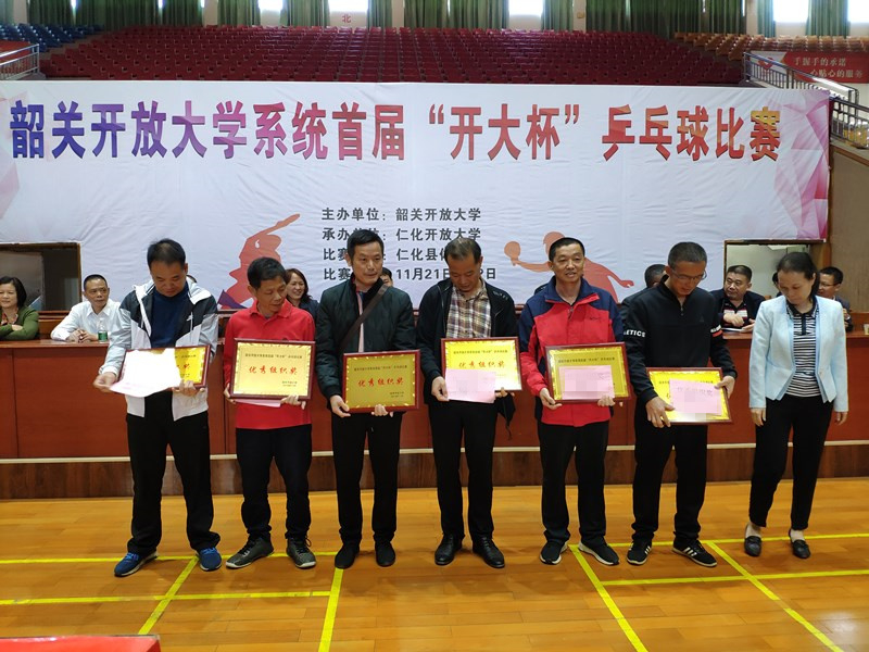 2019年11月22日上午在仁化县体育馆举行闭幕仪式并颁奖,仁化县副县长、教育局副局长等领导出席,我校党委书记、校长钟永红表示,本次赛事增强了本系统的凝聚力,激发了广大教职工的运动热情,我们要继续发扬体育精神,在工作中奋力进取,勇于担当,努力把我校建设成全省同类地区一流开放大学。