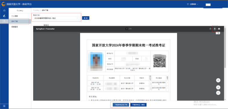 4.点击左边栏目的“资料下载”,即可下载打印准考证: