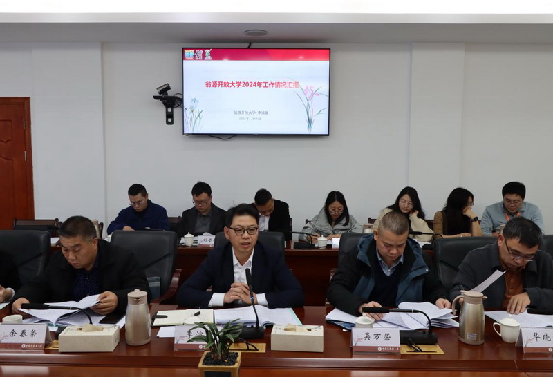 2025年1月14日—15日,以“加强韶关开放大学体系建设 共同谱写韶关开放教育新篇章”为主题的韶关开放大学2025年体系工作会议在翁源召开。广东开放大学发展规划部部长李光先,韶关市教育局副局长梁丽娟,韶关开放大学党委书记、校长钟东,翁源县政府党组成员、副县长李文华,教育局局长张文等领导,各县(市、区)开放大学主要负责人等参加会议?;嵋橛缮毓乜糯笱Ц毙3ち蹯恐鞒?。