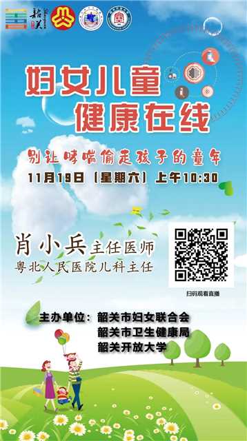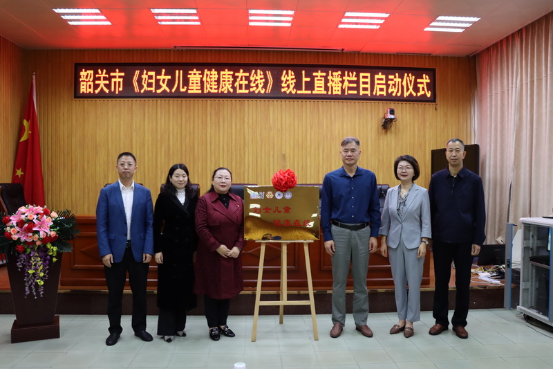 11月19日上午,韶关市“妇女儿童健康在线”在韶关开放大学正式揭牌。韶关市妇女联合会主席汪波、韶关开放大学校长钟永红、韶关市卫生健康局四级调研员范国辉、粤北人民医院副院长李莉、韶关市妇幼保健院副院长王雁、粤北人民医院儿科主任肖小兵共同为韶关市“妇女儿童健康在线”揭牌。揭牌仪式后,“别让哮喘偷走孩子的童年”首期线上直播活动在韶关开放大学直播间正式开讲。