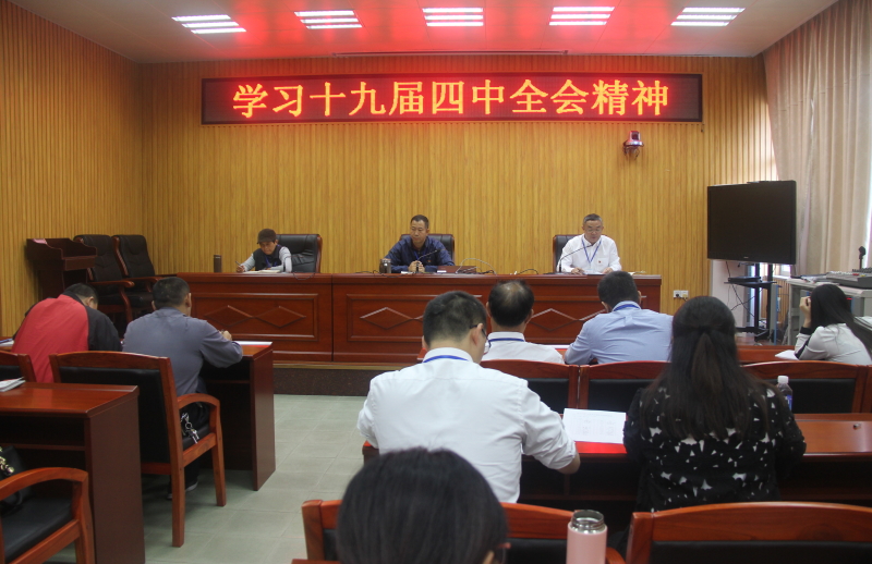 11月13日下午,我校在综合楼一楼会议室召开党员干部学习会议,认真学习党的十九届四中全会精神,校领导班子、全体党员同志参加了此次会议,会议由校党委书记、校长钟永红主持。