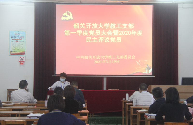 按照市委教育工委、学校党委的工作部署,教工支部于3月19日下午在学校4楼会议室召开第1季度党员大会暨2020年度民主评议党员会议,共20位党员参加。由支部书记吴珊同志主持,校党委班子成员以普通党员的身份参加了本次会议。