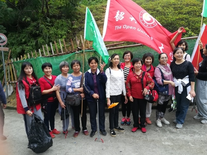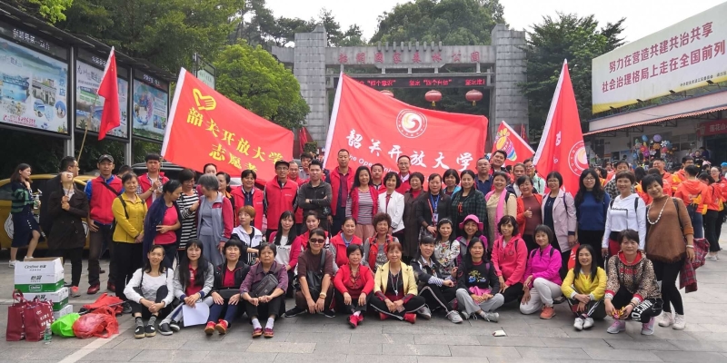 今年的登山活动还多了一个亮点,那边笑声朗朗的志愿者,是社区教育的学员们。韶关开放大学自2017年7月更名后,学校功能定位为服务韶关全民终身学习的新型高等学校。学校面向全社会开展高等学历教育、社区教育、老年教育、职工教育、新型农民教育和各类培训。自今年春季开设社区教育课程以来,受到了社区居民的热烈欢迎?;疃?,他们一边观看沿途秋景,一边清理路边的垃圾,一边感慨:“我们真的觉得很幸福,感谢国家,感谢政府,感谢学校为我们开设免费的高质量的社区教育课程。”他们用朴实无华的语言道出了他们的心声。