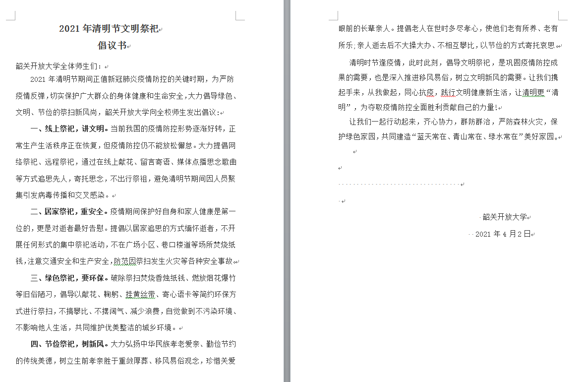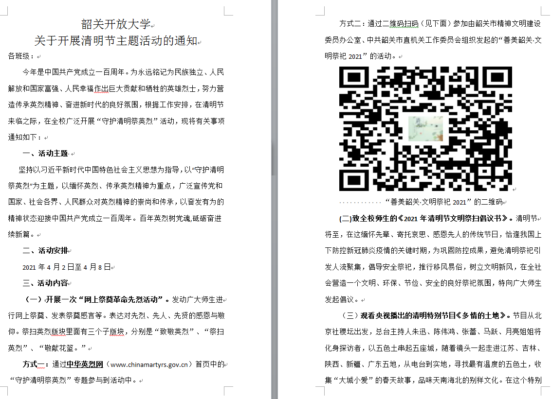 韶关开放大学开展清明节线上主题系列活动