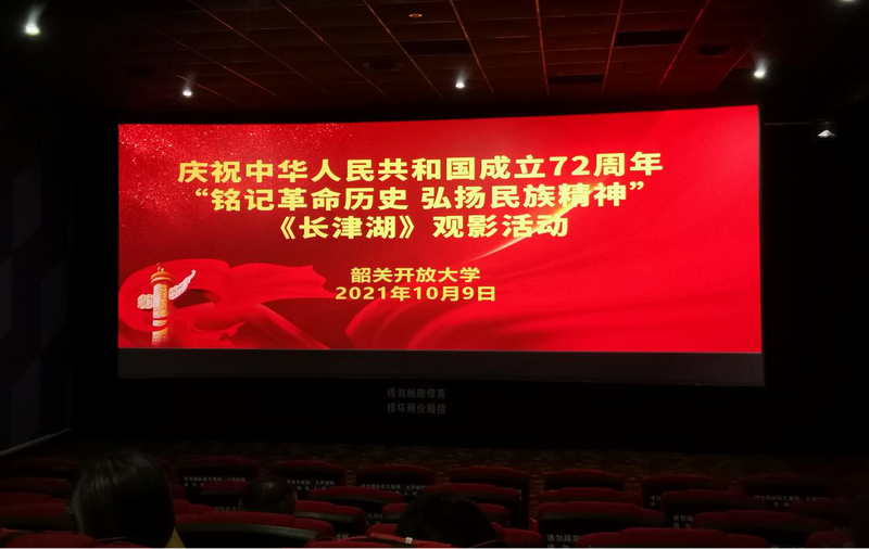 为庆祝中华人民共和国成立72周年,10月9日下午,韶关开放大学党办和工会组织全校教职工开展“铭记革命历史 弘扬民族精神”爱国主义观影活动。