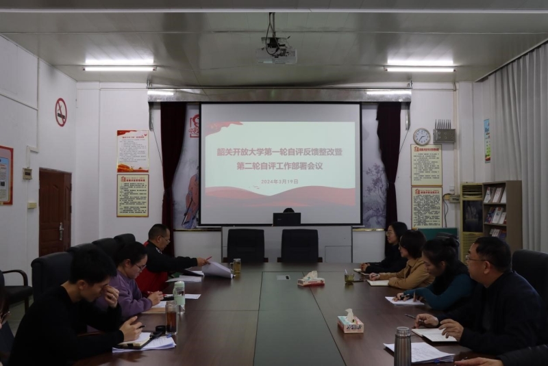 2024年3月19日下午,我校在综合楼431会议室召开韶关开放大学第一轮自评工作反馈整改暨第二轮自评工作部署会议,党委委员、副校长张朝平与学校办学评估工作全体成员参加了会议。