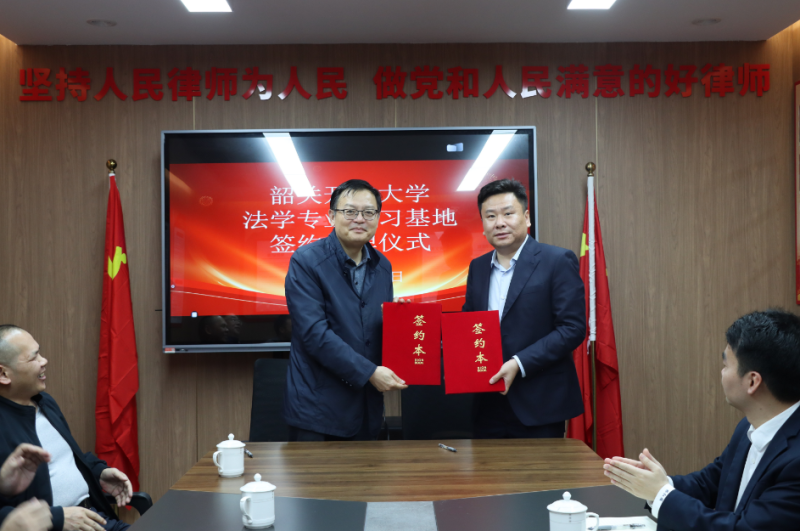 双方就开展合作共建实习基地达成了共识,签订了合作协议书,并进行“韶关开放大学法学专业实习基地”揭牌。