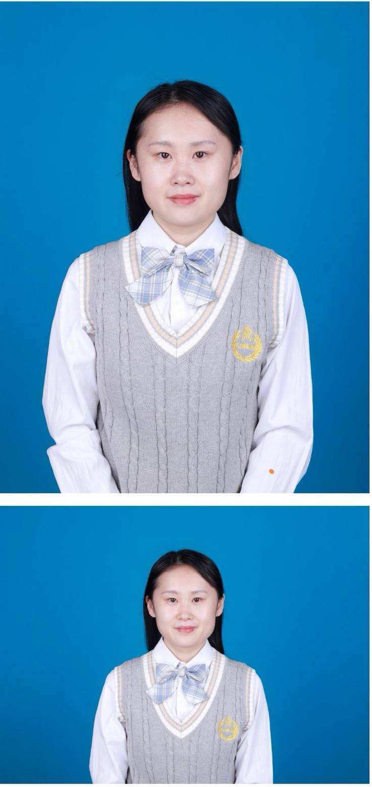 (一)学生可使用照相馆拍摄的电子证件照或手机拍照功能进行上传。注:照相馆拍摄照片务必按要求(见图1)提前保存到手机备用,请勿拉伸照片使图像比例失衡,照片无水印。