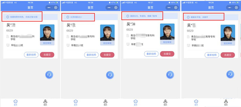 照片可能由于不符合标准规划,人工审核未通过,会提示未通过原因,用户重新上传照片,注意提示内容,避免再次出现同类问题。